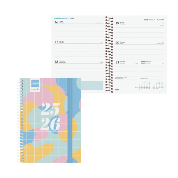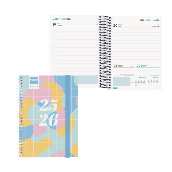 La Agenda Secundaria Curso 2025/26 Art es la elección ideal para estudiantes que buscan una herramienta práctica, moderna y llena de estilo para organizar su año académico. Diseñada específicamente para el curso lectivo, combina funcionalidad con un diseño artístico en tonos celeste, rosa y amarillo pastel, que aporta frescura, originalidad y un toque creativo a la rutina diaria. Perfecta para quienes valoran tanto la organización como la estética.