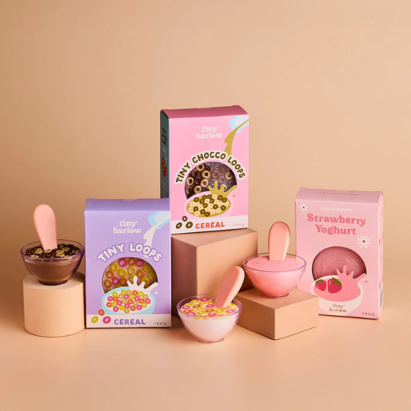 La marca Tiny Harlow, originaria de Australia, destaca por crear accesorios para muñecos con una estética inspirada en los años 90 y un enfoque en el juego imaginativo. El Bol de Cereales para Muñecos Tiny Harlow refleja perfectamente esta filosofía, combinando diseño atractivo, calidad y funcionalidad.