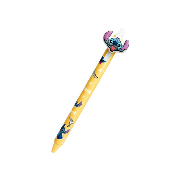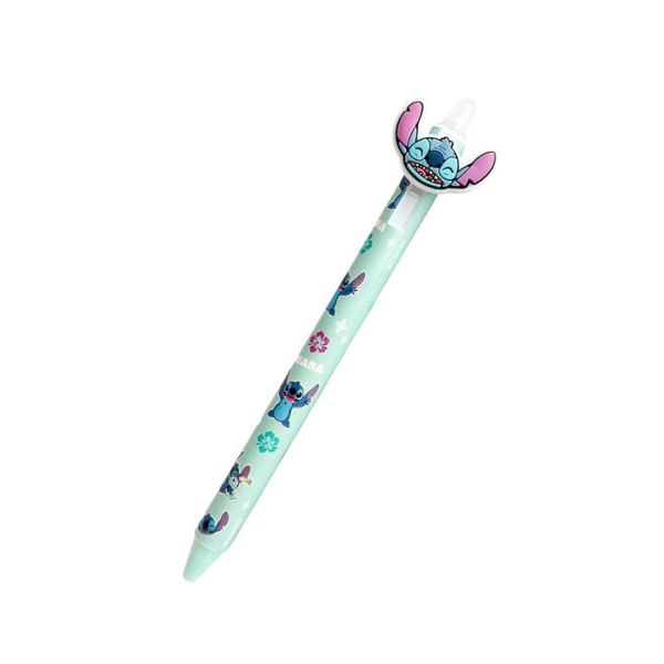 El bolígrafo presenta un diseño inspirado en Stitch, el icónico experimento 626, con un topper de silicona personalizado que muestra su carismática carita tropical. Este detalle lo convierte en una pieza llamativa, perfecta para coleccionistas y fanáticos de Disney. Además, cuenta con un práctico clip pulsador que activa la punta del bolígrafo, ideal para llevarlo en agendas, estuches o cuadernos.