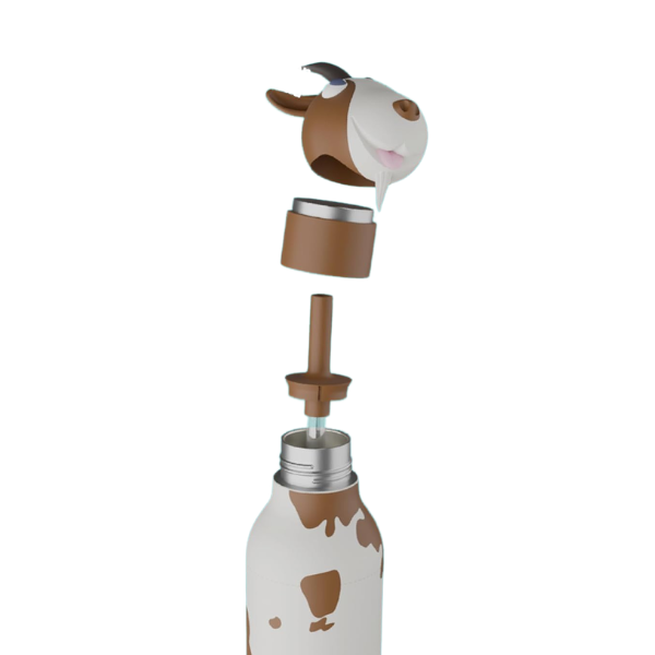 El elemento más característico de la Botella Térmica Asobu Cabra es su original tapón con cabeza de cabra, fabricado en silicona suave libre de BPA. Este diseño aporta un toque simpático y juguetón que hace que la botella destaque entre otros recipientes para bebidas. Además, la tapa está pensada para facilitar el agarre y permitir que los niños puedan utilizarla con facilidad.