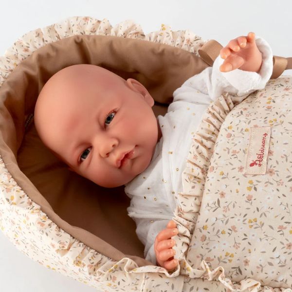 El Capazo con Volante Colección Teresa es el accesorio ideal para que los niños transporten, acurruquen y cuiden a sus muñecos con estilo y comodidad. Diseñado para muñecos de 36 a 46 cm, este capazo combina elegancia, practicidad y calidad artesanal, convirtiéndose en un imprescindible dentro del universo de juego infantil.