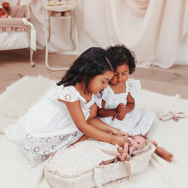 Además de ser un accesorio práctico, este capazo fomenta el juego simbólico o de imitación, una actividad fundamental en el desarrollo infantil. Al cuidar, acunar o transportar a sus muñecos, los niños aprenden a expresar emociones, desarrollar empatía y reforzar sus habilidades sociales. Este tipo de juegos también estimulan la imaginación y la creatividad, convirtiendo el Capazo con Volante Colección Teresa en una herramienta educativa y emocional.