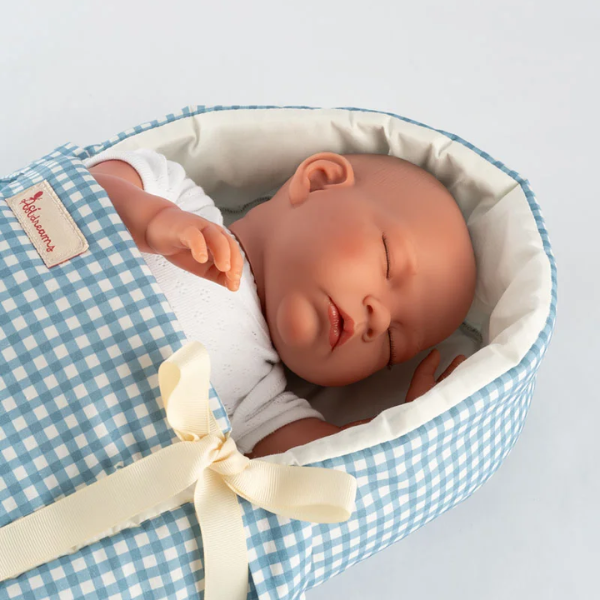 Pensado para muñecos de entre 36 y 46 cm, el Capazo de Tela Colección Noel ofrece un tamaño ideal para adaptarse a la mayoría de muñecas del mercado. Su diseño clásico, con líneas suaves y detalles cuidadosamente elaborados, refleja la esencia elegante y tierna de la Colección Noel, conocida por su estilo atemporal y su toque artesanal.