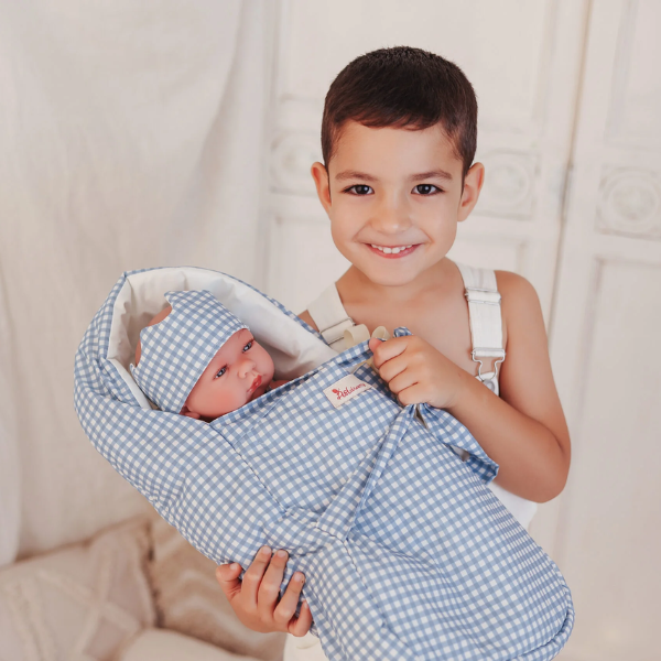 El juego con muñecos es una de las actividades más valiosas durante la infancia. El Capazo de Tela Colección Noel fomenta el juego de imitación, ayudando a los niños a reproducir gestos y comportamientos del mundo real, como acunar, arropar o trasladar al bebé. Esta práctica fortalece la empatía, la responsabilidad y las habilidades sociales, al mismo tiempo que estimula la imaginación y la creatividad.