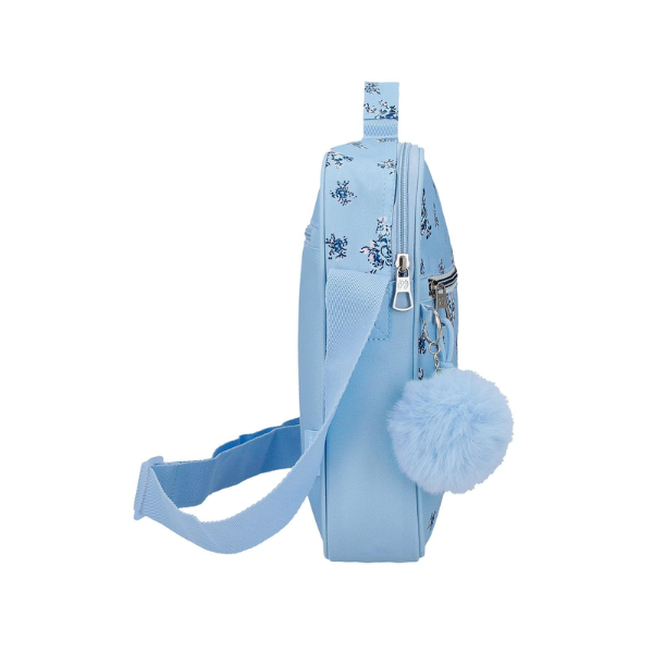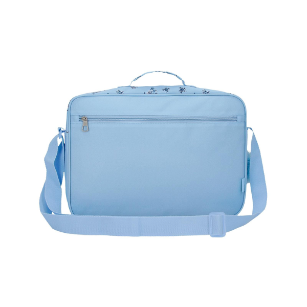Su color azul claro aporta una imagen suave y sofisticada, ideal para quienes prefieren un estilo discreto pero con personalidad. El estampado de pequeñas florecitas en blanco y azul ligeramente más oscuro añade un detalle refinado que transmite frescura y armonía visual. La Cartera Extraescolar 38cm Olivia Azul Claro Pepe Jeans combina minimalismo y tendencia, convirtiéndose en un accesorio versátil que encaja tanto en el colegio como en academias, clases particulares o actividades culturales.
