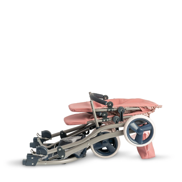 Además, el cochecito es plegable, lo que facilita su transporte y almacenamiento. Puede guardarse fácilmente en cualquier rincón de casa o llevarse de viaje sin ocupar demasiado espacio.