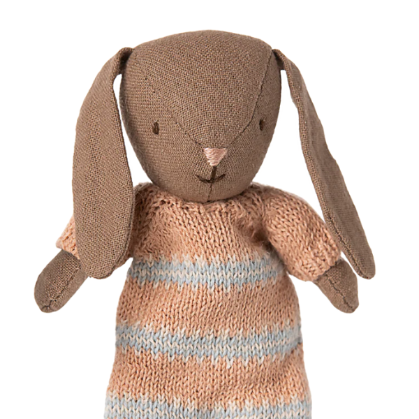 El Conejito Micro Marrón Traje de Punto Rosa de Maileg es pura magia en miniatura.
