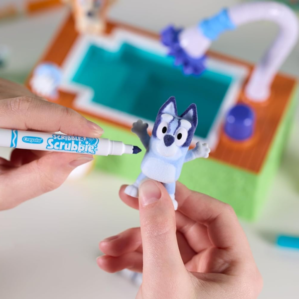 Con el Crayola Washimals Bluey, colorear se convierte en un juego abierto que nunca termina. Cada día puede empezar con una nueva historia, un nuevo disfraz y un nuevo baño divertido. ¡La creatividad se renueva con cada lavado!