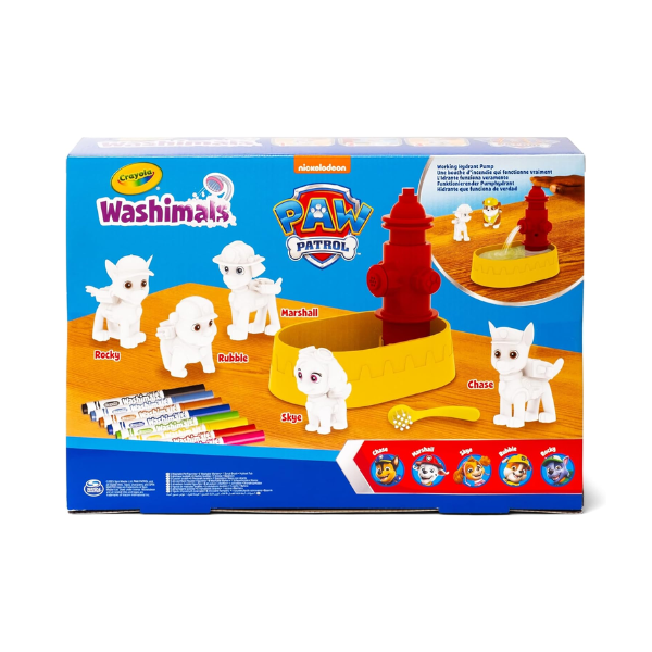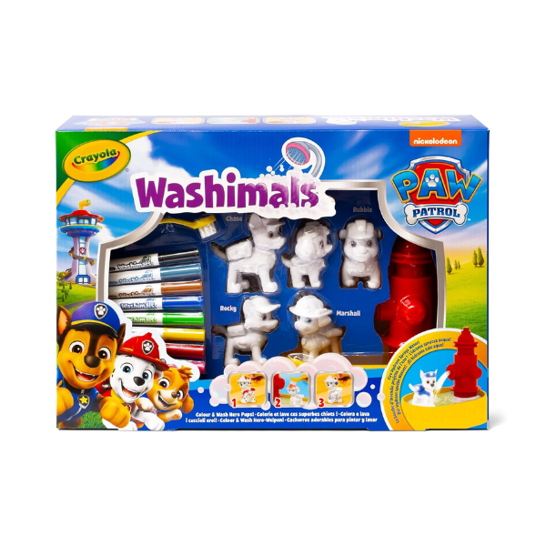 El Crayola Washimals con Piscina La Patrulla Canina es un set creativo diseñado para que los niños vivan horas de diversión imaginativa junto a Chase, Marshall, Skye, Rubble y Rocky. Este juego combina el encanto de los cachorros más queridos de La Patrulla Canina con la divertida experiencia Washimals: colorear, lavar, volver a colorear y repetir tantas veces como se desee.