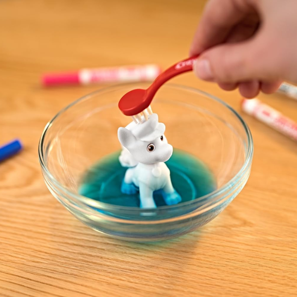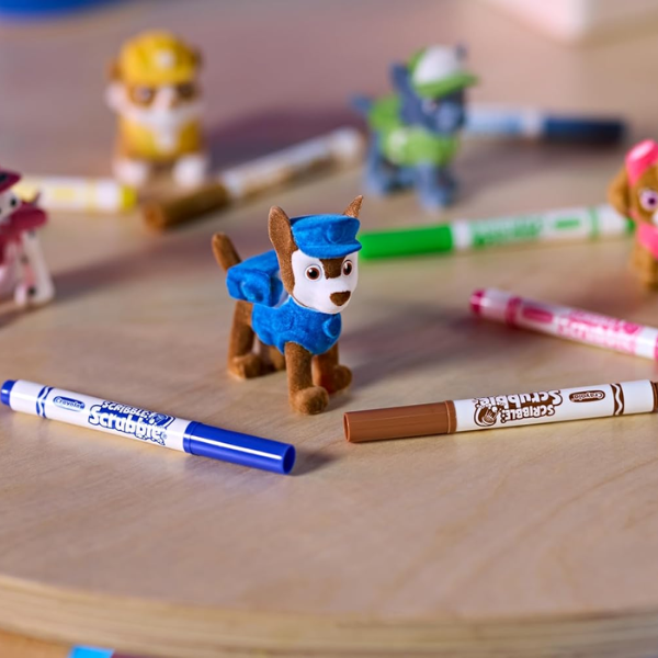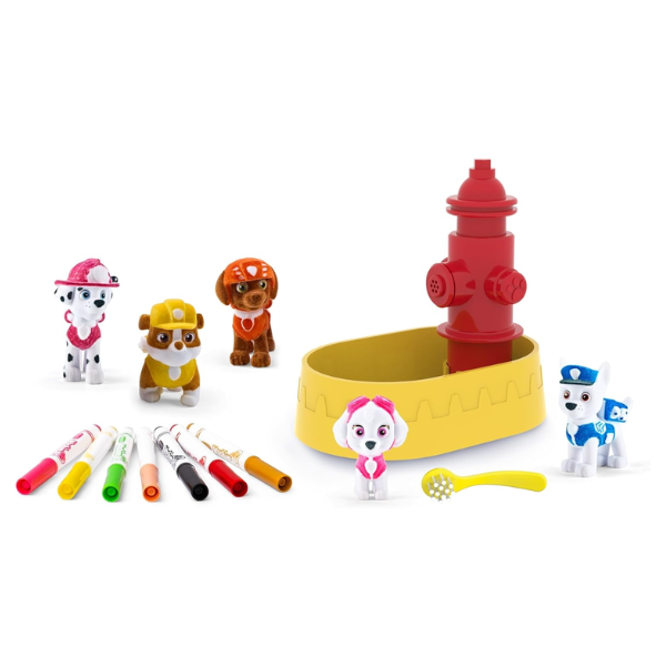 Para dar rienda suelta a la imaginación, el Crayola Washimals con Piscina La Patrulla Canina incorpora 8 rotuladores lavables especialmente diseñados para estos muñecos. Los niños pueden crear diferentes estilos para cada cachorro, decorándolos según la historia que quieran inventar en ese momento.