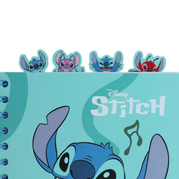 Con un diseño alegre en el que Stitch aparece bailando, este cuaderno A5 destaca por su cubierta de cartón duro decorada con ilustraciones tropicales vibrantes. Gracias a su encuadernación en espiral, ofrece una experiencia de escritura cómoda y totalmente plana, perfecta para usar en clase, en casa o donde quieras.