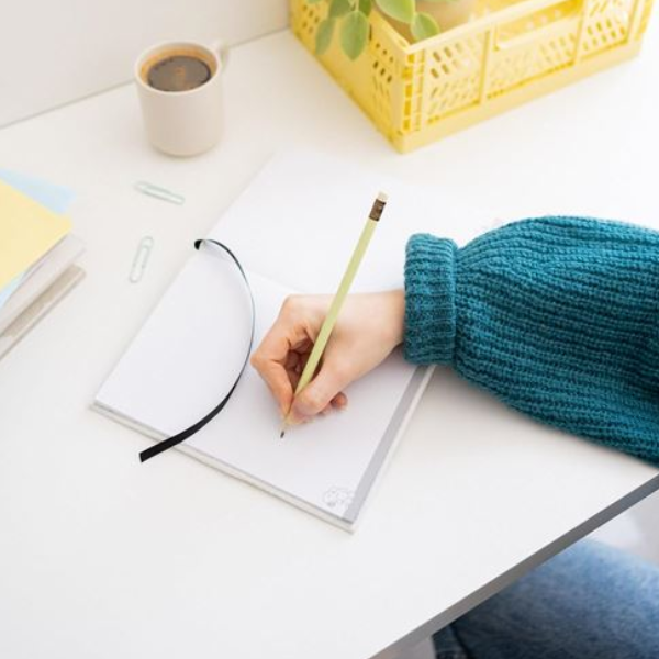 Perfecto para estudiar, trabajar o llevar un diario, su tamaño A5 lo hace práctico para transportar, y su interior personalizado con papel de 100g/m² garantiza una escritura fluida y sin manchas. Además, incorpora un bolsillo extensible para guardar notas importantes, una cinta marcapáginas para llevar un mejor seguimiento y encuadernación encolada de excelente acabado.