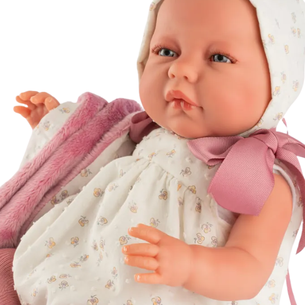 Con una altura de 46 cm y un peso aproximado de 1400 gramos, la Emma Real Reborn ofrece una sensación muy cercana a la de un bebé real. Este equilibrio entre tamaño y peso permite una experiencia mucho más inmersiva, tanto en el ámbito del coleccionismo como en el juego simbólico supervisado.
