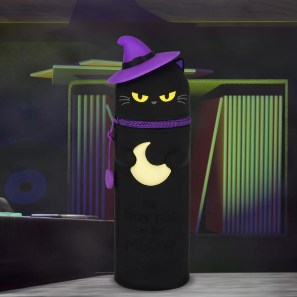 El Estuche de Silicona Legami Halloween 2025 es el accesorio perfecto para quienes aman la funcionalidad y el estilo kawaii. Con forma de gato negro con gorro violeta de bruja y luna brillante, este estuche con temática Halloween combina ternura y misterio en un diseño único.