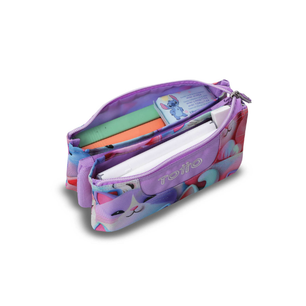 Estuche Escolar Triple Gatos Kawaii Totto