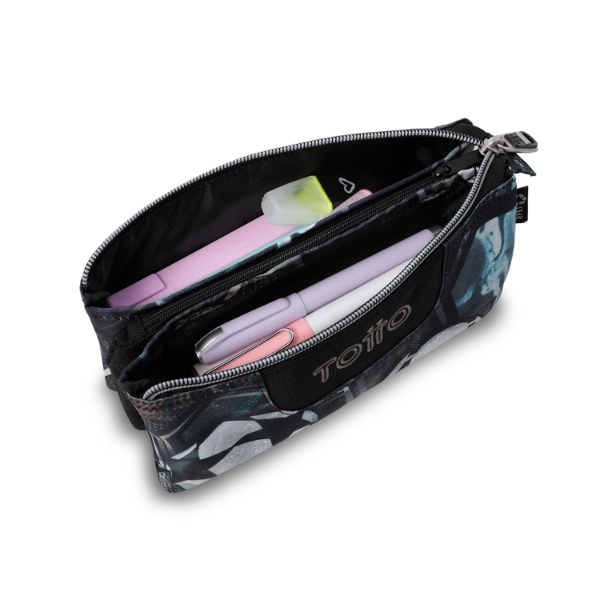 Diseñado para ofrecer la máxima funcionalidad, este estuche cuenta con tres compartimentos independientes con cremallera, que permiten clasificar fácilmente bolígrafos, lápices, rotuladores y otros materiales escolares. Su interior incluye organizadores elásticos, pensados para mantener cada útil en su sitio y facilitar el acceso rápido durante las clases.