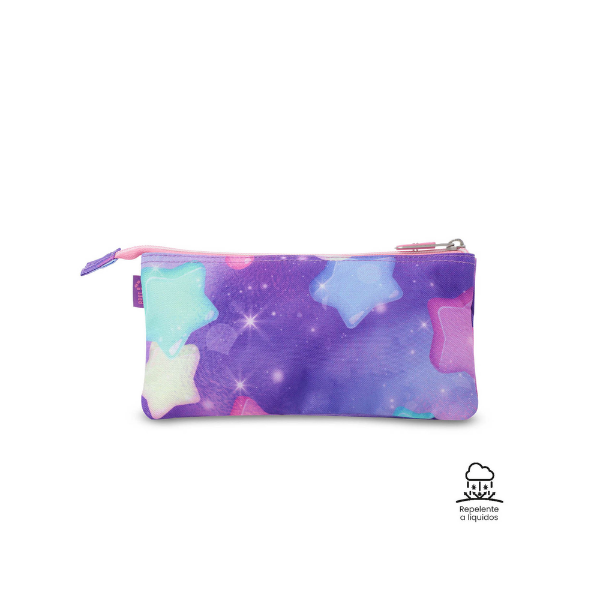 El diseño exterior con estampado de estrellas aporta personalidad y estilo, haciendo que el estuche destaque entre otros accesorios escolares. Es una opción ideal para quienes buscan un equilibrio entre funcionalidad y estética.