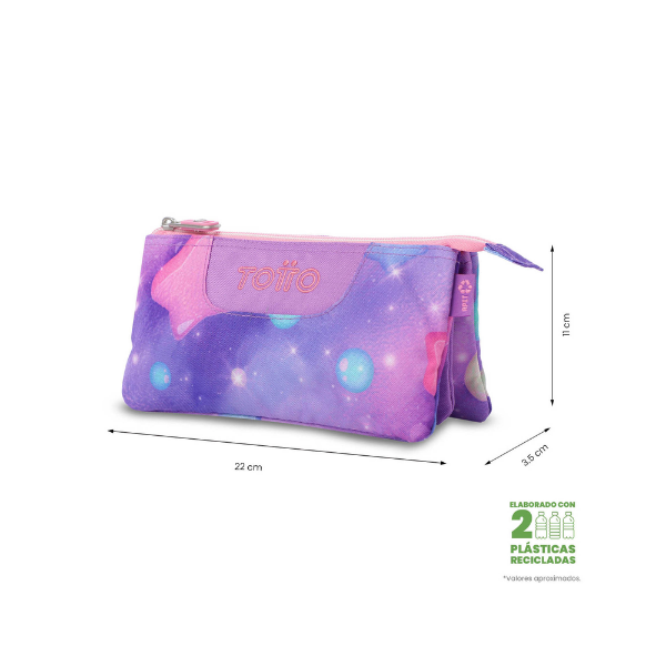 El Estuche Escolar Triple Stars Totto es perfecto tanto para el colegio como para actividades extraescolares. También puede utilizarse como organizador de pequeños objetos, adaptándose a diferentes necesidades.