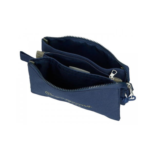 El Estuche Triple Arwyn Marino Pepe Jeans es una solución de organización escolar avanzada diseñada para estudiantes que buscan orden, capacidad y un diseño actual con personalidad. Perteneciente a la colección Arwyn de Pepe Jeans, este estuche destaca por su estética en tonos azul marino y caqui, una combinación elegante y moderna que encaja perfectamente con el estilo urbano de la marca. El diseño se completa con el distintivo detalle de la bandera de Inglaterra, sello característico de Pepe Jeans que aporta identidad y un acabado reconocible.