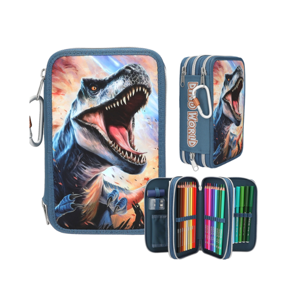 El Estuche Triple con Mosquetón Dino World es una opción perfecta para quienes buscan un estuche escolar completo, resistente y con un diseño impactante. Pensado para niños y niñas que disfrutan del mundo de los dinosaurios, este estuche combina funcionalidad, organización y estilo en un solo producto.