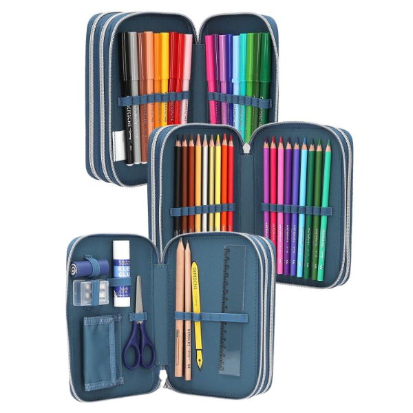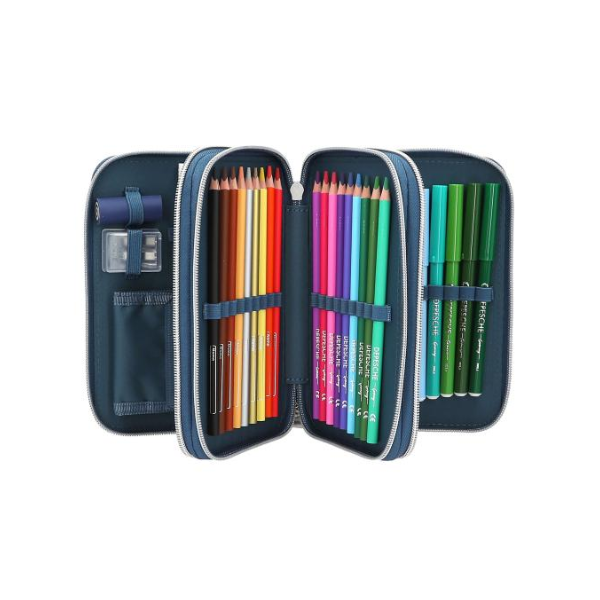 Uno de los aspectos más prácticos de este estuche es su estructura de tres compartimentos independientes con cremallera. Esta organización permite separar y acceder fácilmente a todo el material escolar, facilitando el orden y mejorando la experiencia de uso diaria. Cada compartimento está diseñado para optimizar el espacio y mantener todo en su sitio.