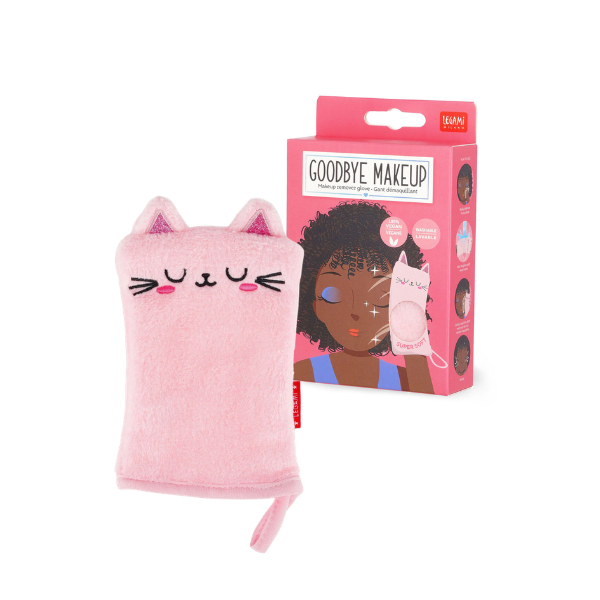 El Guante Desmaquillante Kitty Legami destaca por su tejido suave y agradable, pensado para eliminar los restos de maquillaje sin necesidad de productos agresivos. Gracias a su textura especial, permite retirar maquillaje, suciedad e impurezas con solo agua, cuidando la piel y evitando irritaciones.