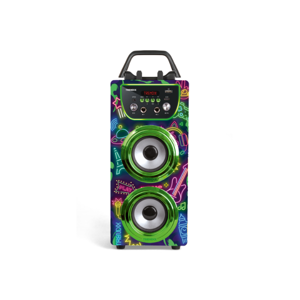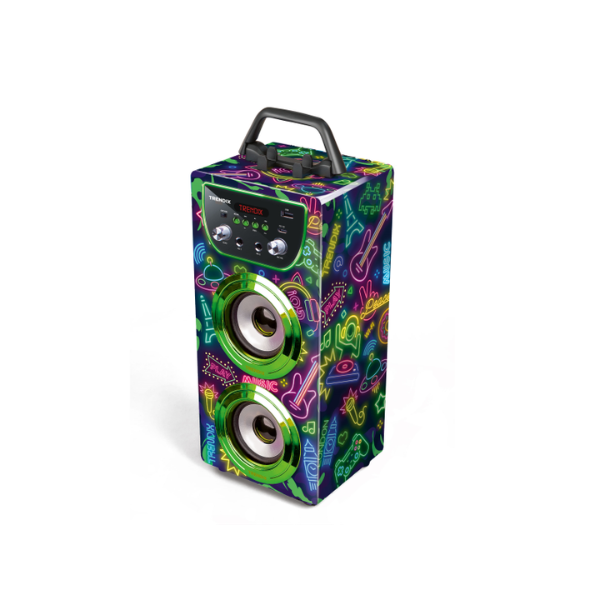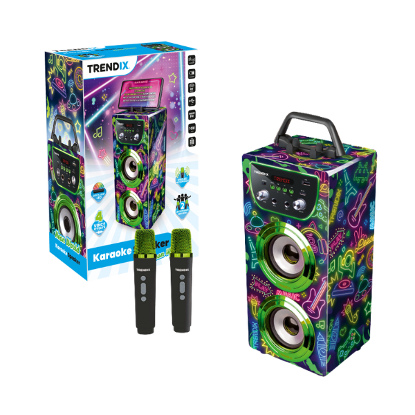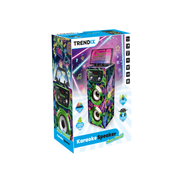 El Karaoke Neon World es el altavoz karaoke perfecto para transformar cualquier momento en una auténtica fiesta musical. Con su diseño moderno y sus luces de discoteca integradas, este karaoke portátil convierte cualquier habitación en un escenario donde cantar, bailar y divertirse sin parar.
