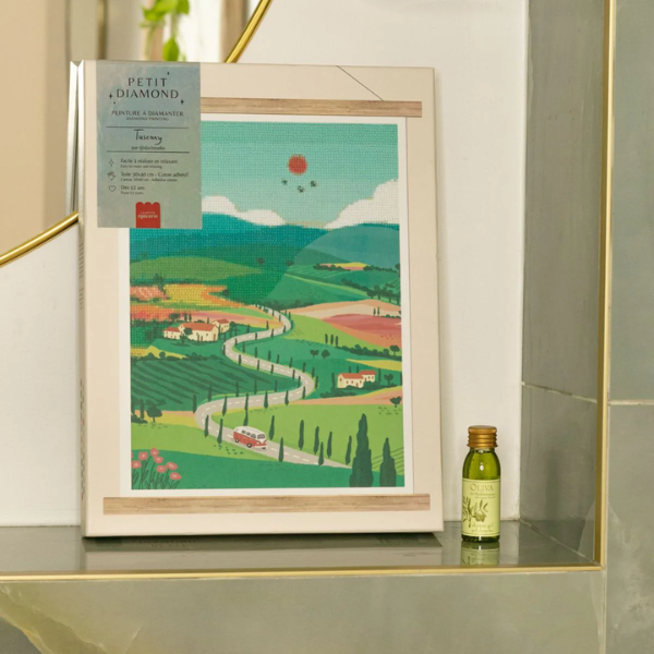 El Kit de Pintura con Diamantes La Toscana permite crear una ilustración vibrante aplicando pequeños diamantes de resina sobre un lienzo adhesivo numerado. Esta técnica, conocida como diamond painting, es sencilla, accesible y altamente gratificante.