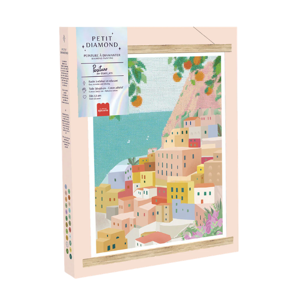 El Kit de Pintura con Diamantes Positano de Petra es una invitación a viajar al corazón del Mediterráneo a través de una experiencia creativa relajante y contemporánea. Inspirado en las casas de fachadas pastel que se aferran al acantilado frente al mar azul, este diseño captura la esencia de la dolce vita en la icónica Positano, en plena Costa Amalfitana.