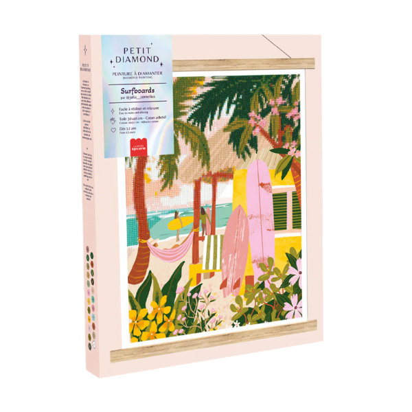 El Kit de Pintura con Diamantes Tablas de Surf refleja esta filosofía con una escena luminosa que conecta con la cultura del océano y el espíritu libre del verano.
