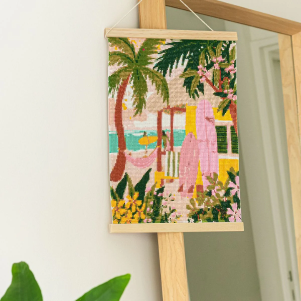 El Kit de Pintura con Diamantes Tablas de Surf permite crear una ilustración moderna aplicando pequeños diamantes de resina sobre un lienzo adhesivo numerado. La técnica de diamond painting es sencilla y accesible, ideal tanto para principiantes como para aficionados a las manualidades.