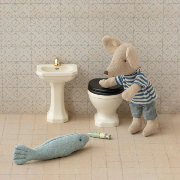 Recomendado para niños a partir de 3 años, este lavabo metálico combina belleza, resistencia y valor educativo. Además, puede integrarse fácilmente en cualquier habitación Maileg, desde un baño completo hasta un rincón improvisado dentro de una SuitCasa Ratón.