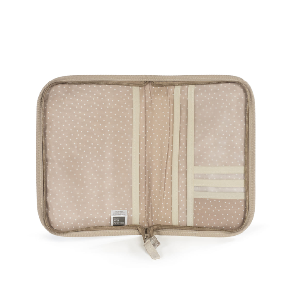 El interior del Libro de Nacimiento Caetana Sand Walking Mum está dividido en varios bolsillos prácticos en ambos lados, que permiten clasificar los documentos según la necesidad: desde las recetas y controles pediátricos hasta los papeles oficiales más importantes. Gracias a su distribución inteligente, encontrarás todo de manera rápida y sin complicaciones. Para mayor seguridad, cuenta con un cierre de cremallera completo, que mantiene los documentos siempre protegidos y evita que se pierdan durante el transporte.
