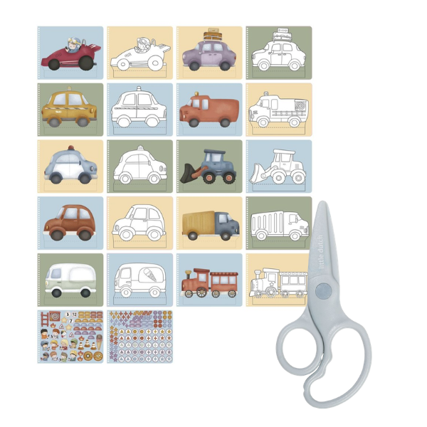 El Libro Recorta y Pinta de Vehículos Little Dutch refleja una tendencia actual en el mundo infantil: juguetes y materiales que fomentan la creatividad y el aprendizaje a través del juego.