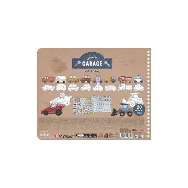 El Libro Recorta y Pinta de Vehículos Little Dutch también incorpora pegatinas, lo que permite personalizar los dibujos y crear escenas únicas. Este elemento fomenta el juego creativo y la expresión artística, haciendo que cada actividad sea diferente.