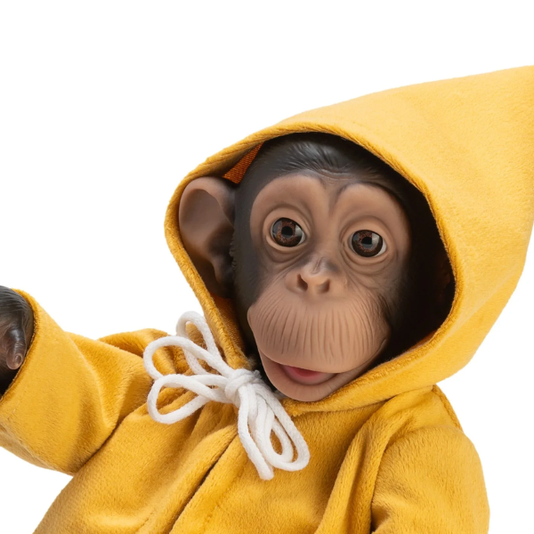 Descubre a Lola la Chimpancé con Trenca Mostaza, una de las figuras más entrañables y realistas de la colección de animales Reborn de ASIVIL S.L.. Con 32 cm de altura, esta adorable chimpancé ha sido diseñada con un nivel de detalle excepcional para parecerse a un auténtico bebé chimpancé, transmitiendo ternura, curiosidad y simpatía en cada rasgo.