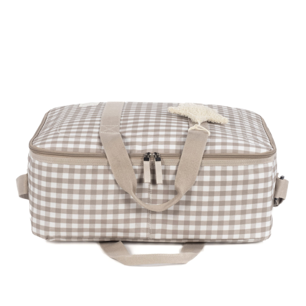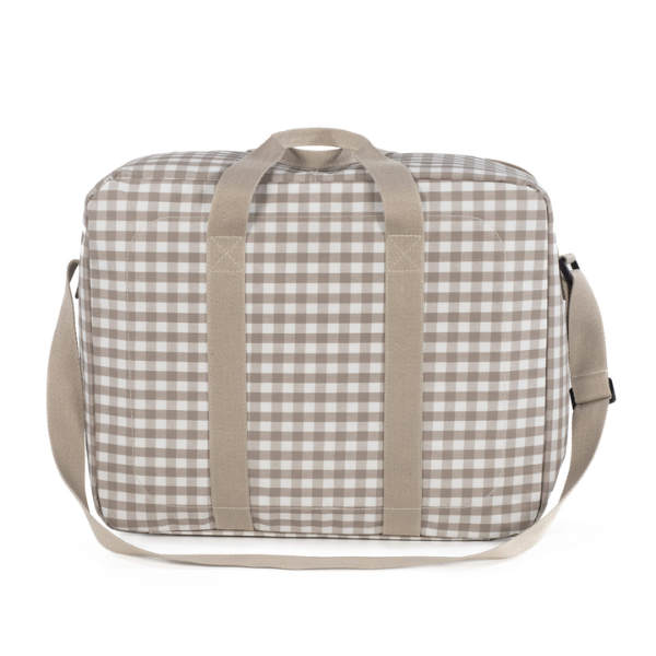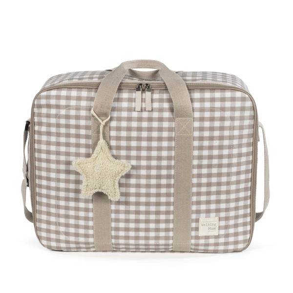La Maleta Caetana Sand Walking Mum es la compañera ideal para uno de los momentos más importantes de tu vida: la llegada de tu bebé. Diseñada pensando en las necesidades de las mamás y papás modernos, esta maleta de maternidad ofrece espacio, comodidad y estilo para llevar todo lo imprescindible al hospital en el día del nacimiento. Con su elegante diseño en tonos beige con estampado de cuadros, no solo es práctica, sino también sofisticada y atemporal.