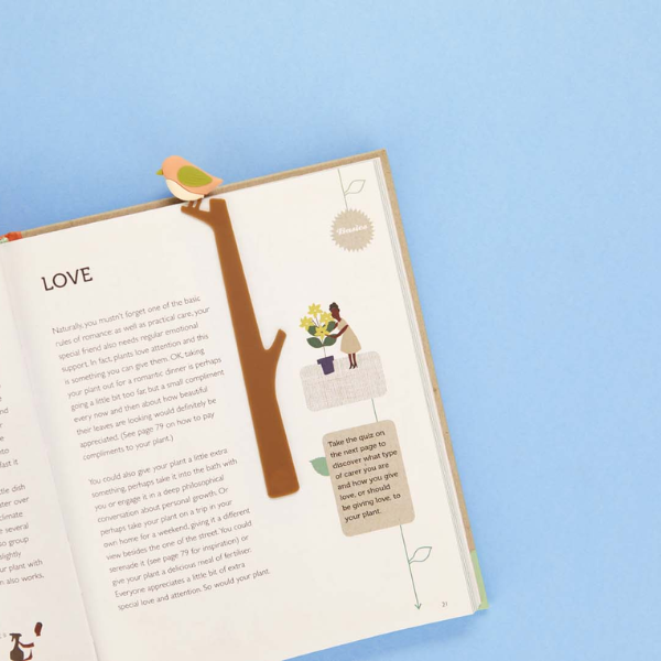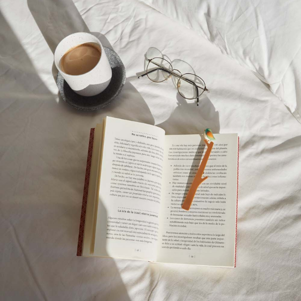 Al marcar la página, el pajarito sobresale por la parte superior del libro, simulando que está posado sobre el tronco. Este diseño no solo facilita encontrar rápidamente la página donde dejaste la lectura, sino que también añade un toque decorativo divertido y elegante a cualquier libro.