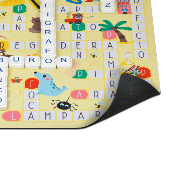 El Mi Primer Juego de Palabras Cayro incluye un tablero de neopreno antideslizante, resistente y fácil de limpiar. Este material permite jugar cómodamente en cualquier superficie y garantiza una gran durabilidad, incluso con uso frecuente.