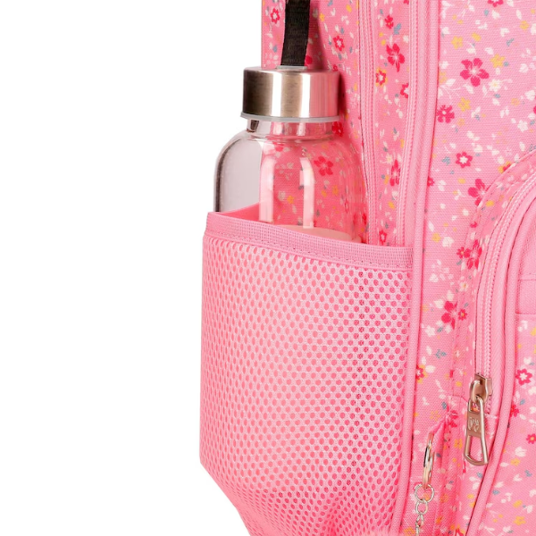 La estética de la colección Alenka no pasa desapercibida. Las flores superpuestas en tonos delicados evocan una sensación de tranquilidad y conexión con la naturaleza, mientras el fondo rosa aporta ese toque juvenil, tierno y alegre que tanto gusta. Esta mochila ha sido diseñada para que cada día te sientas vibrante, segura de ti misma y acompañada por un producto que se adapta a tu ritmo.