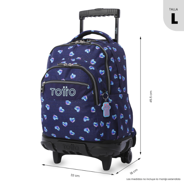 La Mochila Escolar con Carro Corazones Azul Totto es la combinación perfecta entre funcionalidad, resistencia y un diseño encantador. Su estampado de corazones en tonos azules con acabado glitter aporta un estilo dulce y moderno, ideal para quienes buscan una mochila práctica sin renunciar a un toque de personalidad.