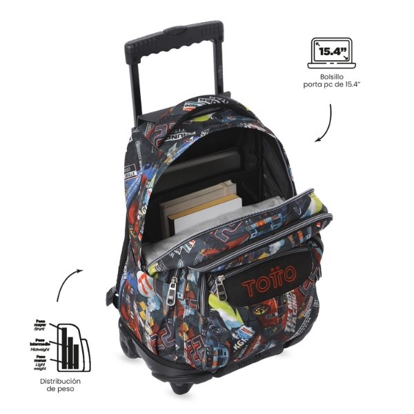 La Mochila Escolar con Ruedas Coches Totto es la opción perfecta para estudiantes que buscan funcionalidad, resistencia y un diseño lleno de energía. Inspirada en el mundo del motor, su estampado de coches aporta un estilo dinámico y moderno que encanta a los más pequeños, convirtiéndola en una compañera ideal para el día a día escolar.