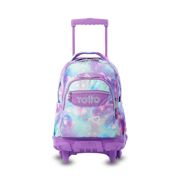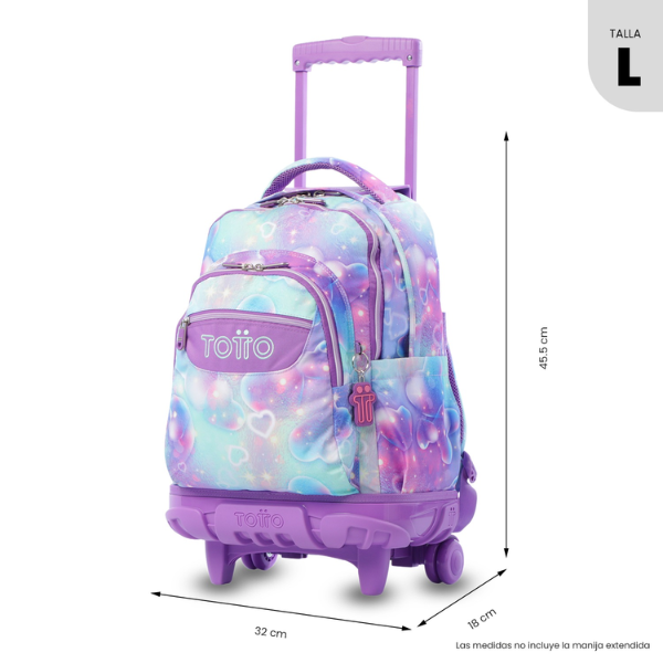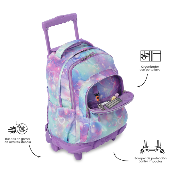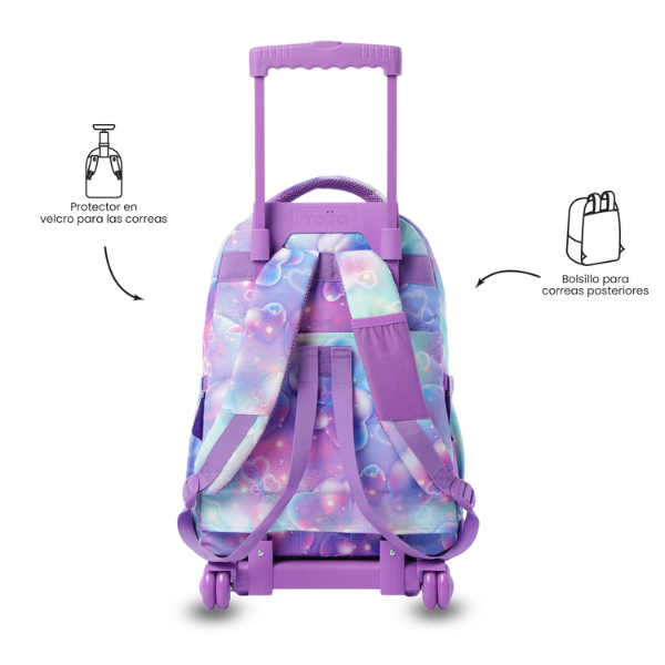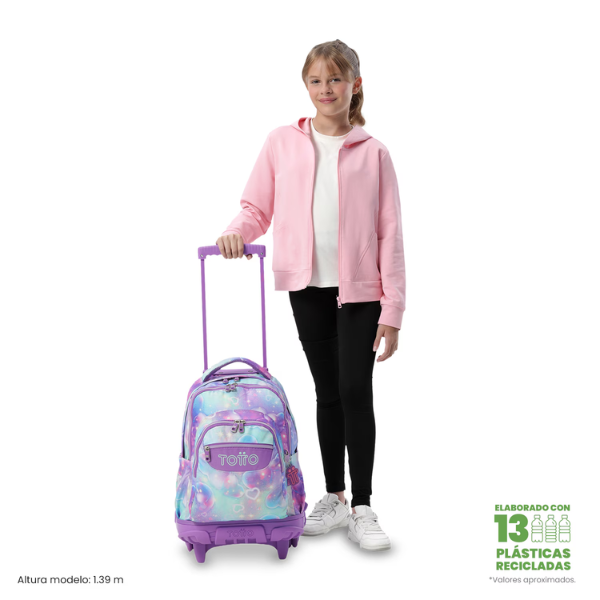 Mochila Escolar con Ruedas Corazones Lila Totto
