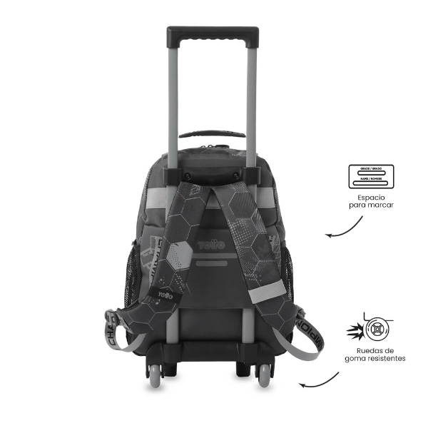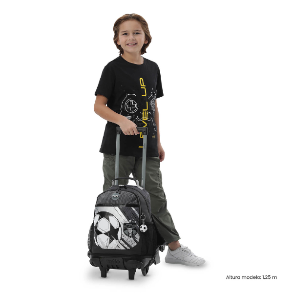 La Mochila Escolar con Ruedas Fútbol talla M Totto ofrece un sistema de transporte muy cómodo gracias a sus ruedas integradas de alta resistencia. Este sistema permite desplazarla sin esfuerzo, reduciendo la carga sobre la espalda del estudiante. Además, incorpora una manija superior y correas acolchadas y ajustables, lo que permite utilizarla tanto como trolley como mochila tradicional.