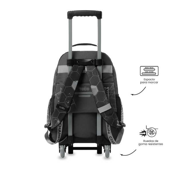 La Mochila Escolar con Ruedas Fútbol Totto ha sido diseñada para ofrecer comodidad en cualquier situación. Dispone de un sistema de ruedas resistente que facilita el transporte del peso, reduciendo la carga sobre la espalda. A esto se suman unas correas acolchadas y ajustables que permiten utilizarla también como mochila tradicional, adaptándose a las necesidades del día a día escolar.