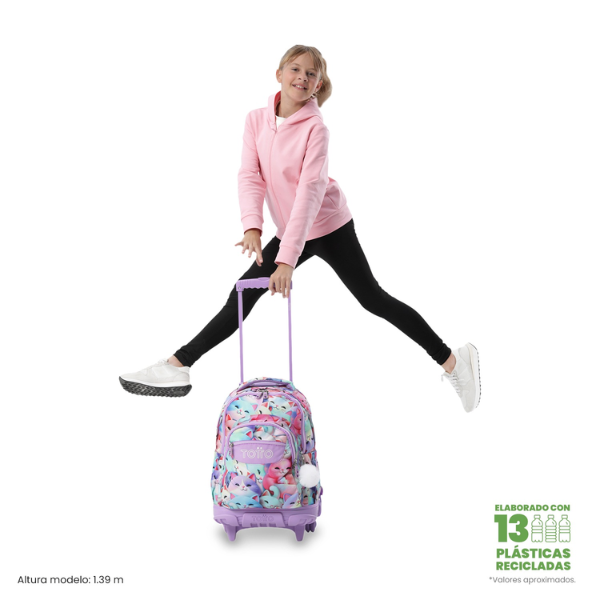 Mochila Escolar con Ruedas Gatos Kawaii Totto