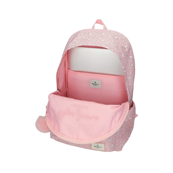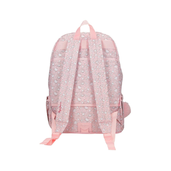 La Mochila Escolar Mia Rosa Claro Pepe Jeans también destaca por su ergonomía. Incorpora tirantes anchos, acolchados y ergonómicos que se adaptan perfectamente a la espalda, garantizando una correcta distribución del peso. Este diseño mejora la comodidad y reduce la carga durante los desplazamientos diarios.