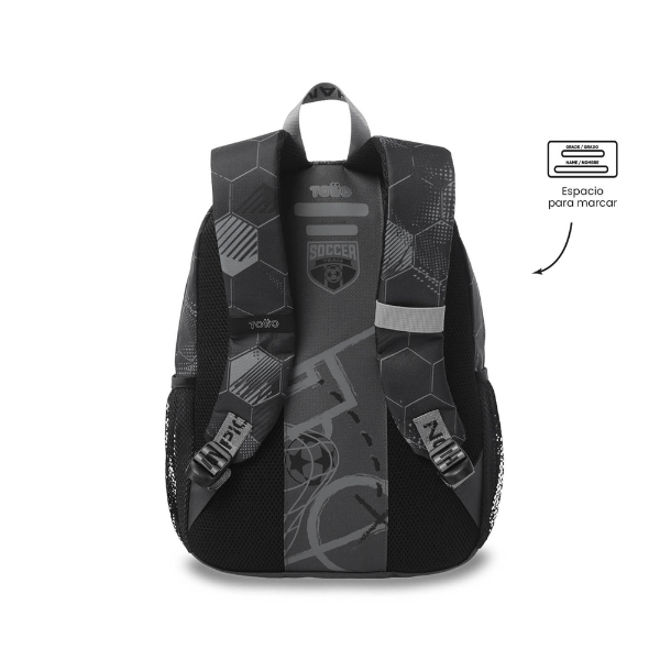 Su diseño frontal está claramente inspirado en el fútbol, con un estampado en tonos oscuros y gráficos dinámicos que evocan la emoción del juego. Este estilo convierte a la Mochila Infantil Fútbol Totto en un accesorio perfecto para pequeños aficionados al deporte, aportando motivación y entusiasmo en su rutina escolar.