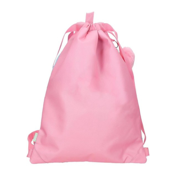 Fabricada en poliéster resistente, esta mochila saco ofrece durabilidad y ligereza. Su sistema de cierre fruncido con cordones permite un ajuste rápido y seguro del contenido, garantizando comodidad al llevarla sobre los hombros como una mochila tradicional.