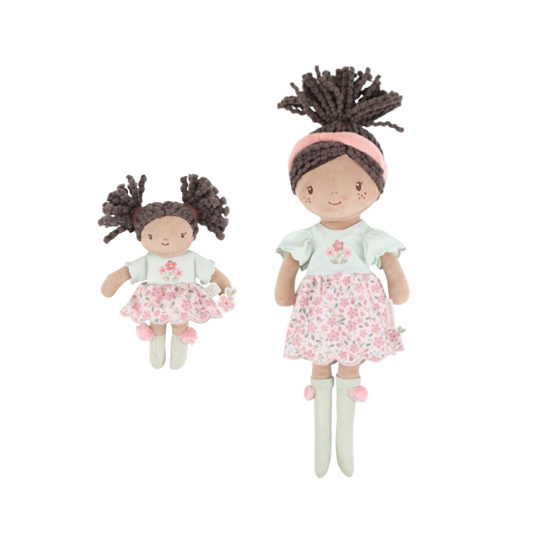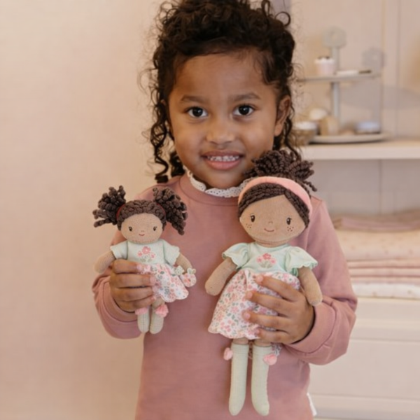La Muñeca Blandita Evi Little Dutch está disponible en dos tamaños, lo que la convierte en una opción versátil. El modelo de 35 cm es perfecto para el juego diario y para acompañar a los niños en casa, mientras que el modelo de 10 cm es ideal para llevar a cualquier lugar.